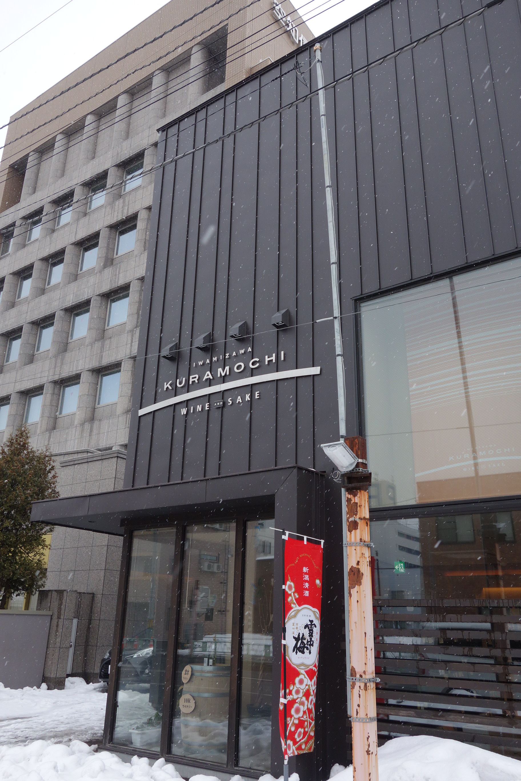 駅前の倉持商店で松尾・MADARAOと福岡のクアドリフォリオをゲット。「春らしいお酒ですよ~」と店主。