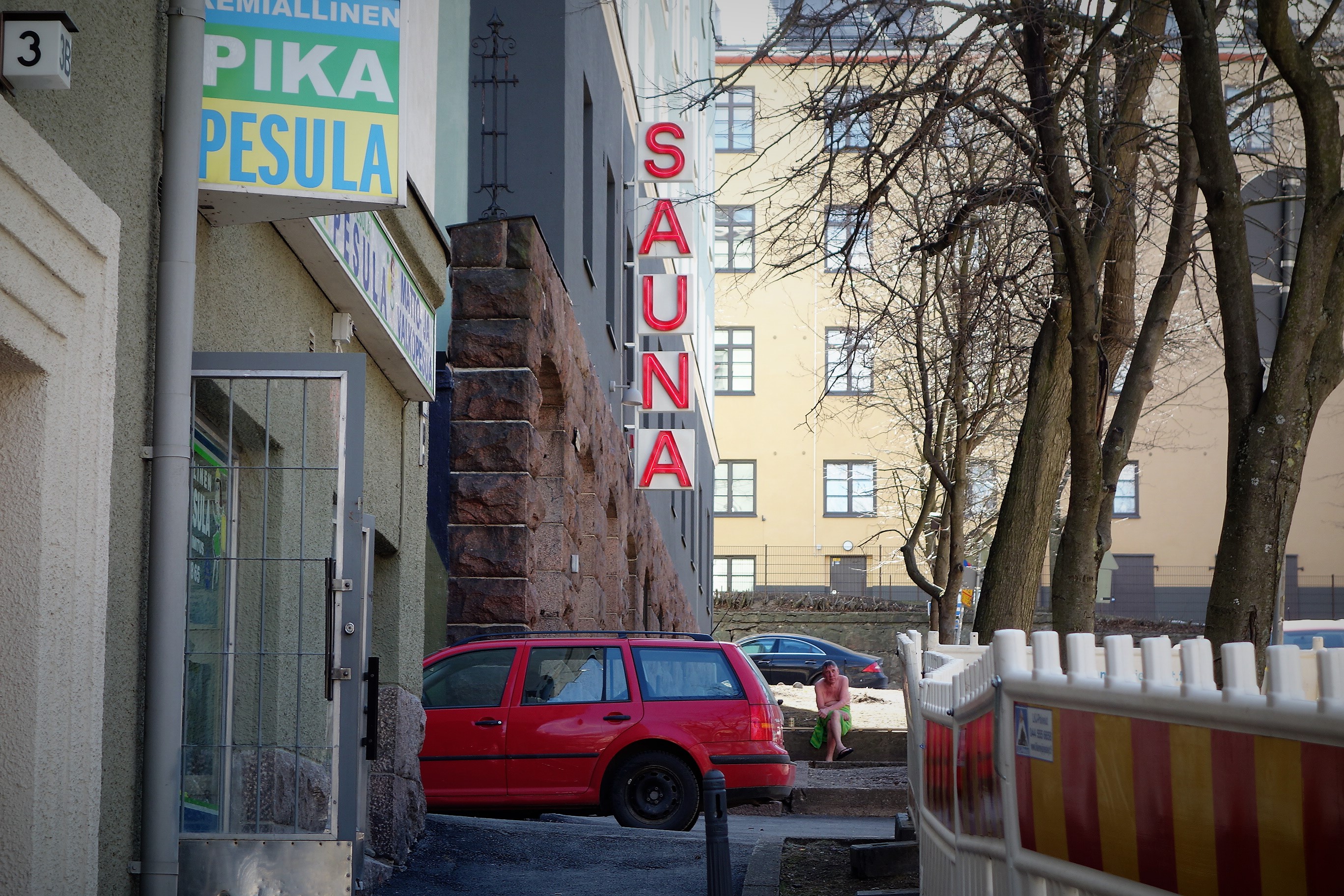 博物館を後にし、地下鉄でKallio地区へ移動。地下鉄を降りると、周辺にはエロマッサージサロンやパンク・メタル好きな若者が集うロックバーなどが。若干やさぐれ感漂うエリアを通り抜け、いざ、ヘルシンキ最古の公衆サウナ、コティハルユサウナへ。