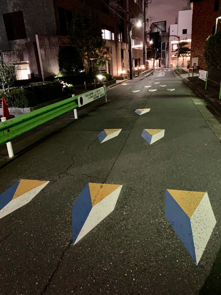表参道駅からブルーノートまで、青山南小学校を横目に中通りを歩いたが、路面標示がLight as a featherのカバーのデザインのように(笑)。この日のためにというわけではなさそうだけれど、路面標示デザイン担当がAzymuth好きだったのかもしれない。