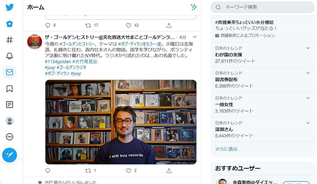 ひょんなことから民放ラジオで「ボブ・ディランと自分」のような内容の短い、きわめてパーソナルな自分のライフストーリーが紹介された。文化放送:大竹まことのゴールデンラジオ内のコーナー「ゴールデン・ヒストリー」(2020年4月14日14:00-14:10)という番組だ。