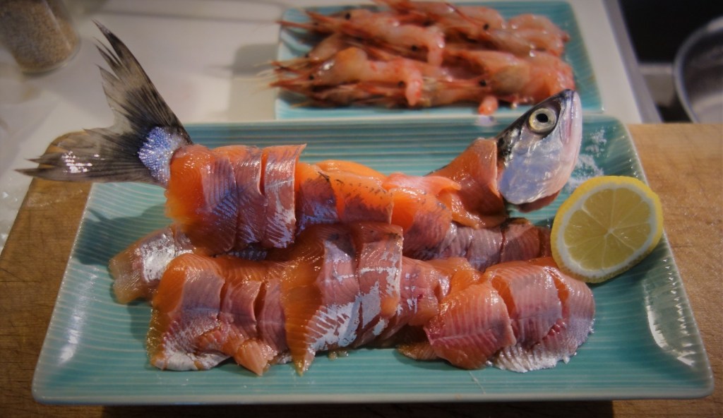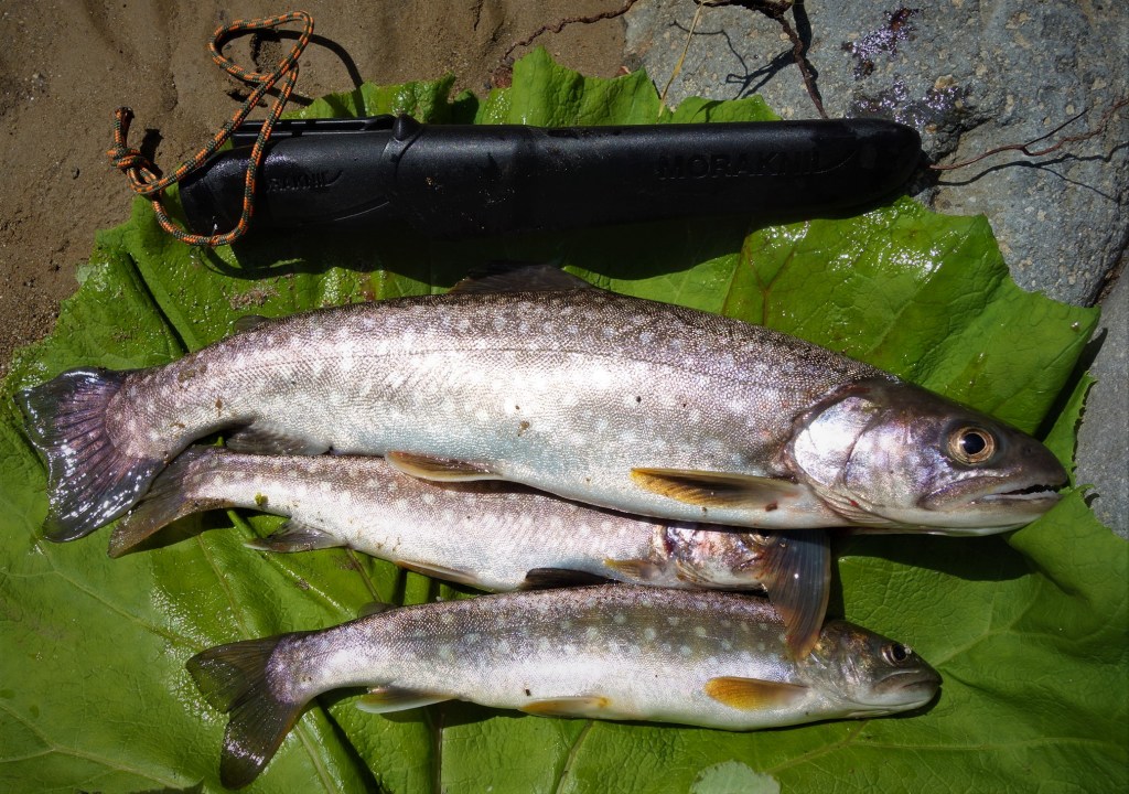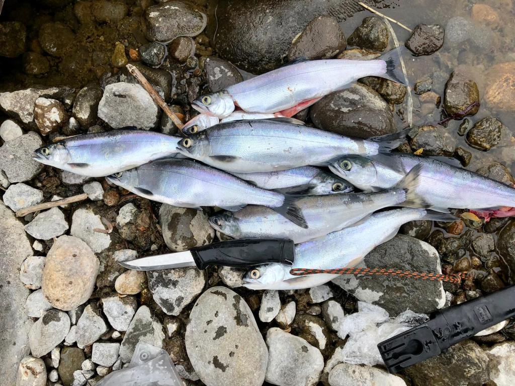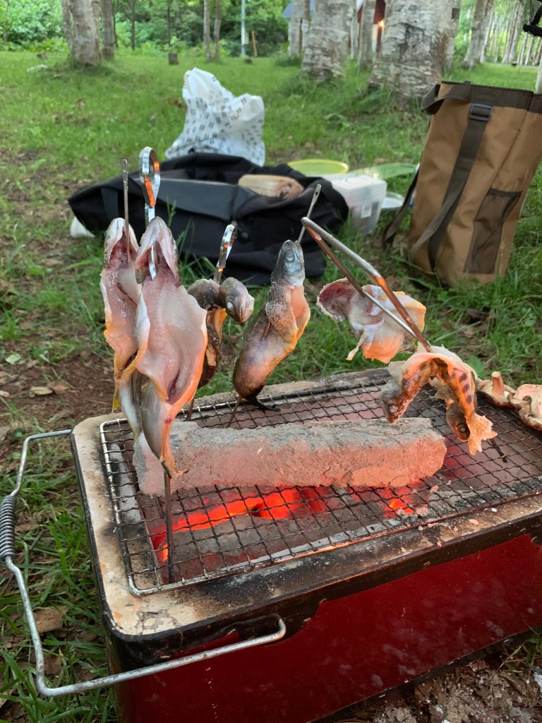 6月は淡水魚を狙った。南北海道は6月1日がヤマメ禁漁の解禁日、また支笏洞爺の湖のヒメマス解禁日も同日である。解禁直後、幼馴染と赤井川村のキャンプ場で釣り合宿と相成った。ヤマメ釣りによく2人で出かける川なのだが、今年は雪代が多く水温がとても低い。案の定、釣れてくるのはイワナばかり。それでもイワナの尺越えを2本出し、その晩はテン場で渓魚の刺身と塩焼きを頬張った。大きいイワナの刺身は脂がのって旨いのだ。