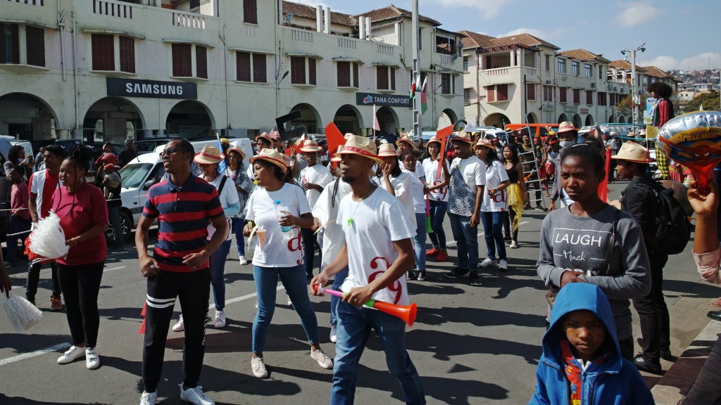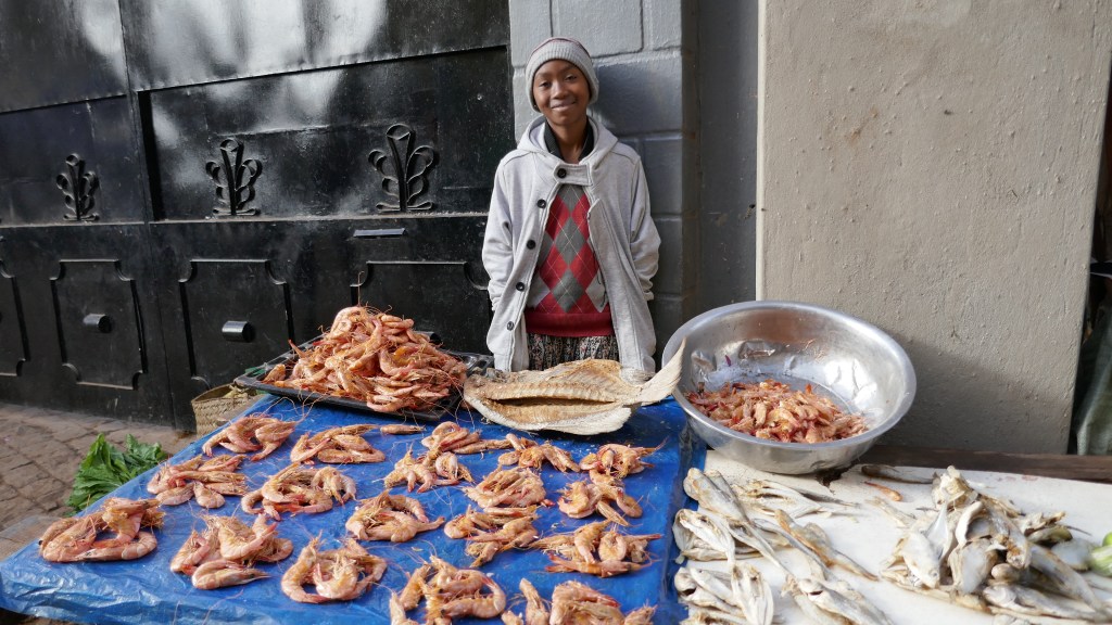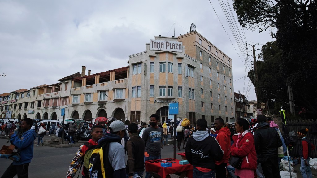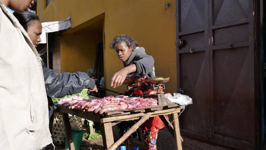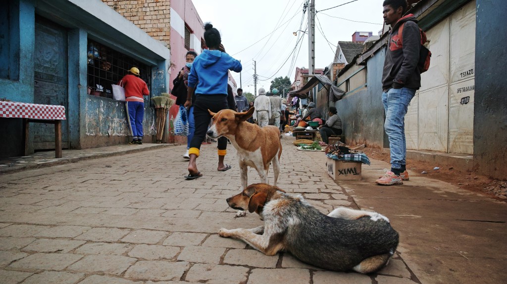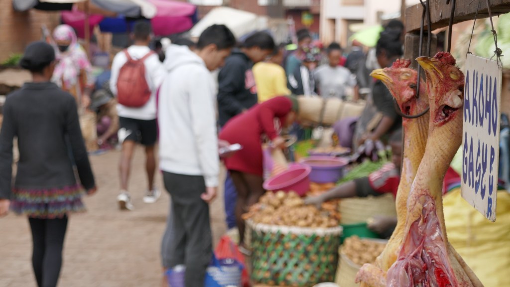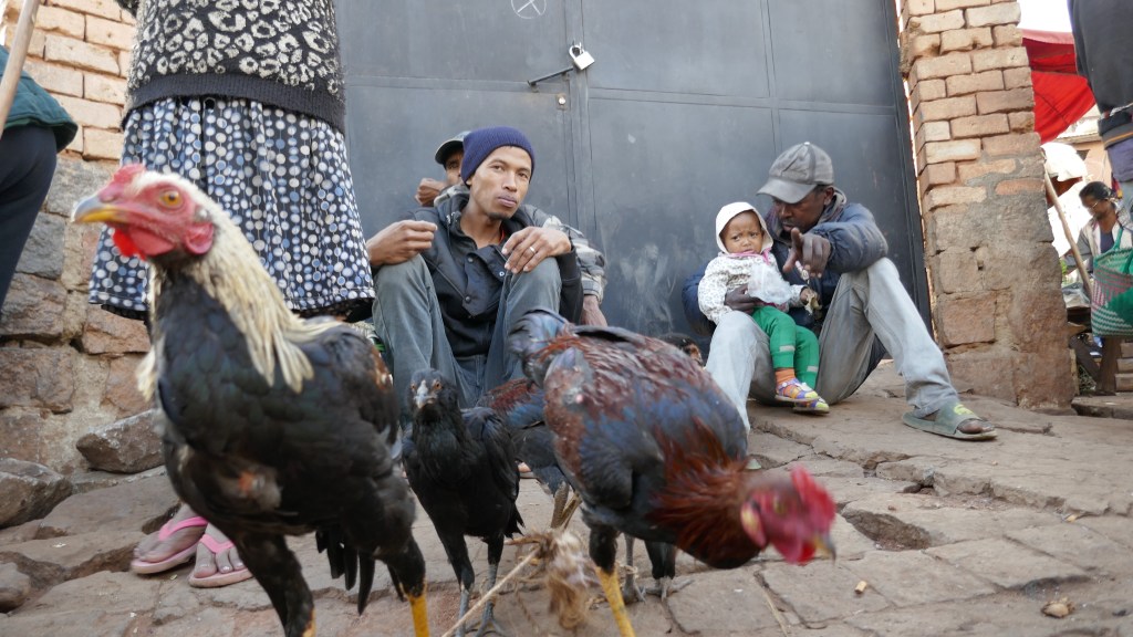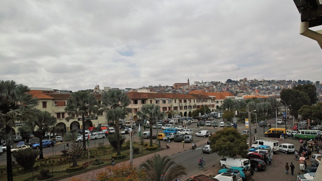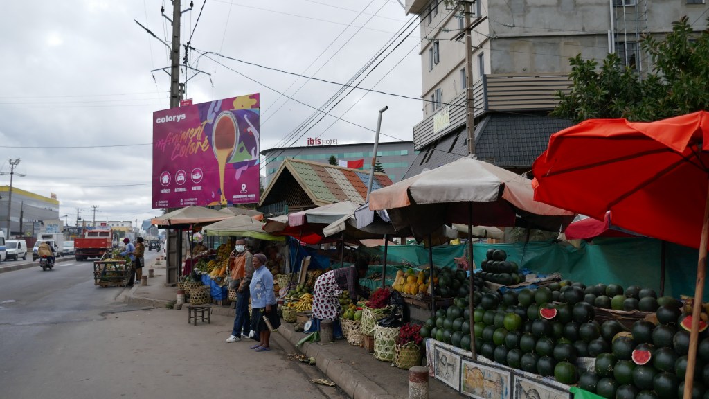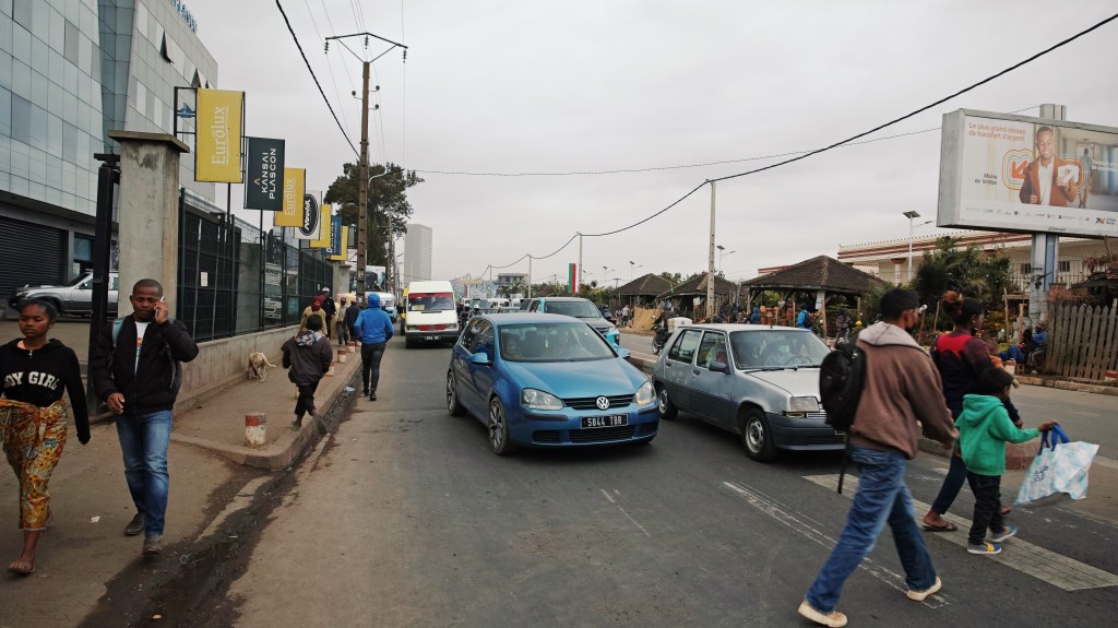 マダガスカル国のGNI指数は161か国中下から3~5番あたりを行ったり来たりしており、世界最貧国の一つに数えられ貧困率は人口の約 8 割にのぼる。短い滞在の中でも、その貧しさに目が行ってしまう場面に数多く遭遇した。ホテルの近くには多数のホームレス、物乞い、ストリートチルドレンがいて、彼らよりも暮らし向きが少し良い人たちが通り沿いにスラム街を形成している。汚染されてエメラルドグリーン色に変わった川で女たちが洗濯し、裸足の子供たちがお金をせびって50メートルくらいついてくる。中通りに入ると露天商が立ち並び、肉や魚や野菜を売る人々が通りを埋めつくし、ニワトリやカモや野良犬や猫がそこかしこで闊歩している。慎ましさの中でたくましく生きている人々の穏やかで明るい表情が眩しい。