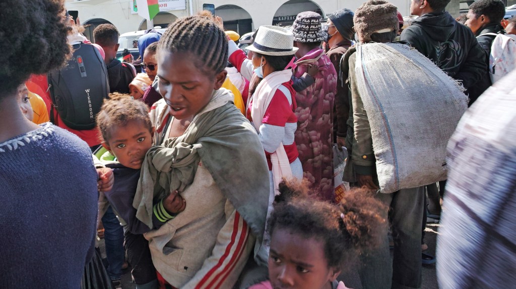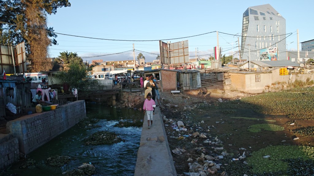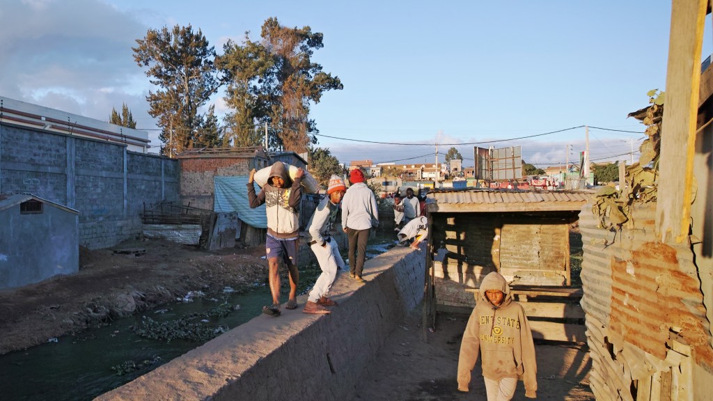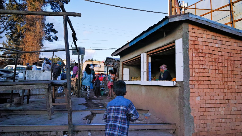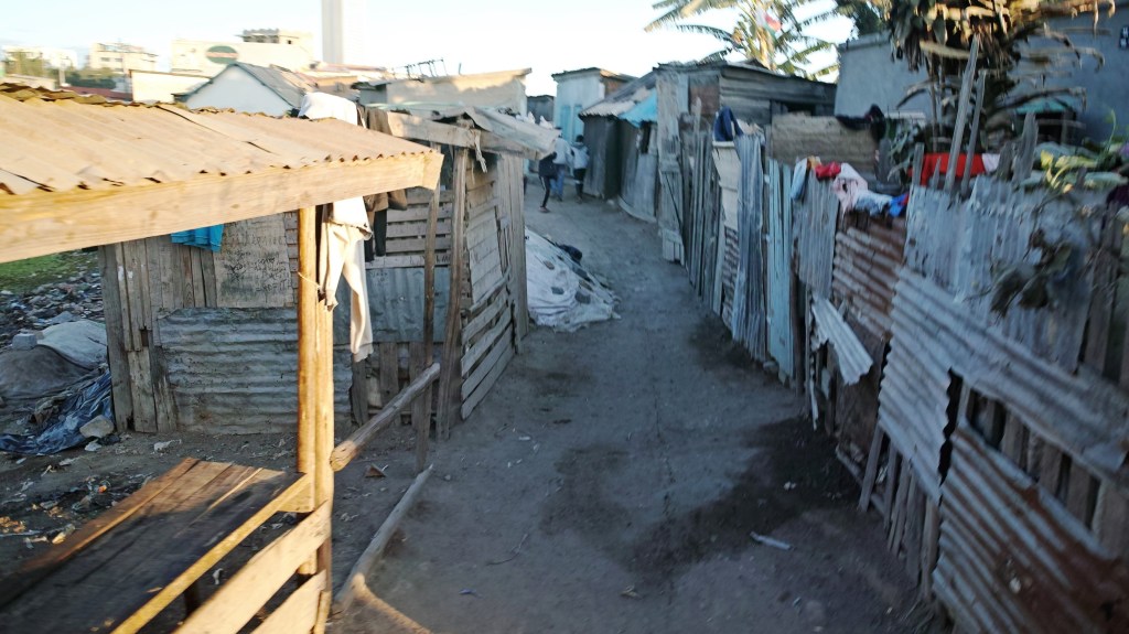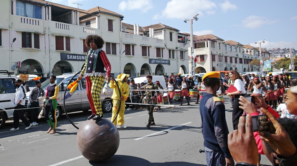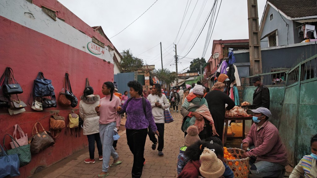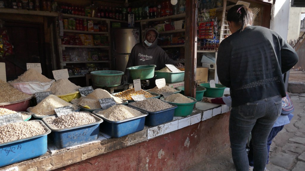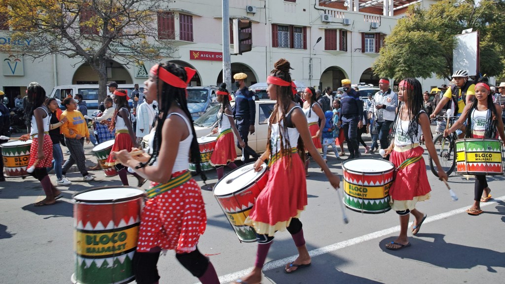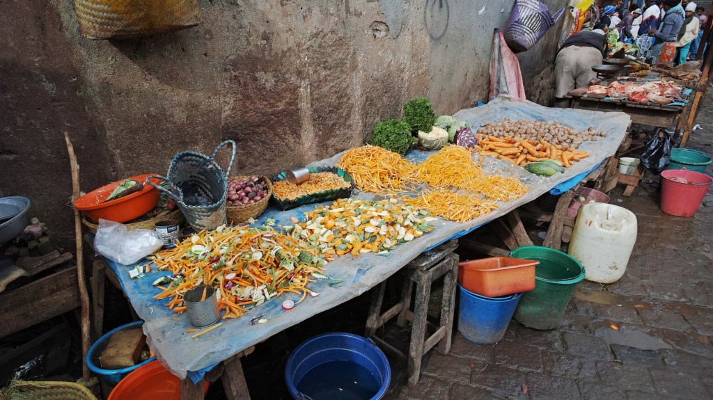 マダガスカル国のGNI指数は161か国中下から3~5番あたりを行ったり来たりしており、世界最貧国の一つに数えられ貧困率は人口の約 8 割にのぼる。短い滞在の中でも、その貧しさに目が行ってしまう場面に数多く遭遇した。ホテルの近くには多数のホームレス、物乞い、ストリートチルドレンがいて、彼らよりも暮らし向きが少し良い人たちが通り沿いにスラム街を形成している。汚染されてエメラルドグリーン色に変わった川で女たちが洗濯し、裸足の子供たちがお金をせびって50メートルくらいついてくる。中通りに入ると露天商が立ち並び、肉や魚や野菜を売る人々が通りを埋めつくし、ニワトリやカモや野良犬や猫がそこかしこで闊歩している。慎ましさの中でたくましく生きている人々の穏やかで明るい表情が眩しい。