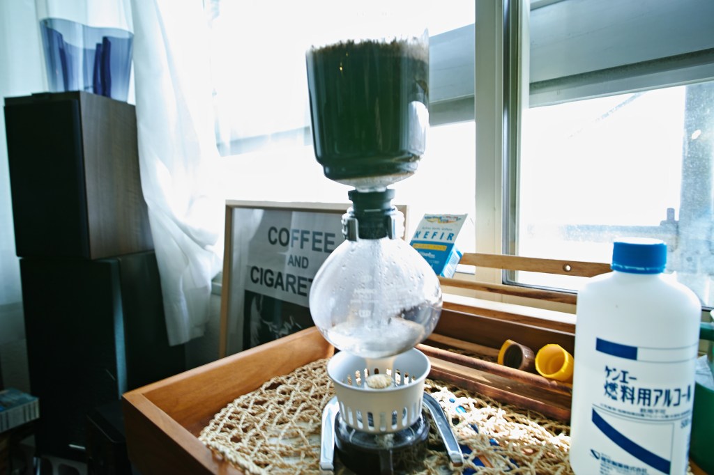 ここまででも十分手がかかっているのだが、ここまでくれば電気コーヒーメーカーを使うことが憚られる気がしてくる。棚の飾りと化していたサイフォンを持ち出し、アルコールランプにアルコールを補充し、サイフォンに水を入れ、コーヒーをセットする。ここまで来たら、点火はマッチしかない。四ツ谷のイーグルのマッチがあったはずだ。気分はジャズ喫茶のおやじである。マッチでアルコールランプの芯に着火する。ここから冷水が沸点に達するまで10分ほどかかる。