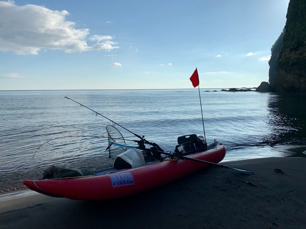 カヤックは海に浮かんでいるだけで気分がいいので、釣れないとわかっているなら竿を出さないという選択肢もあるにはあるのだが、其処は釣り人の悲しい性。「もしかしたらはぐれた青物が」とか「ベイトが浅瀬に入ってきたら、ヒラメが内湾に入ってくるのでは」と絵空事を想像し、気づけば魚探まで積んで船を出してしまうのだ。この時期積丹の遊漁船に乗れば水深100Mのポイントまで連れて行ってくれ、ブリ、シイラ、マグロ、イカなど何かしらの釣果を得られる。そちらに食指が動かないのは、やはり「カヤックで浮かぶ+遊びで釣りをする」>「遊漁船で釣りをする」という自由度の高さに重きを置く自身の好みに拠るのだろうと思う。遊漁船は楽に釣りができる一方で、あわただしいし、船長という絶対的司令塔が「釣らせてくれる」という感覚が強く、自分で魚を探して釣るカヤックとは趣が異なる。B/C的にも(要は乗船料がかかる)カヤックに分がある。なんせC=0なので。