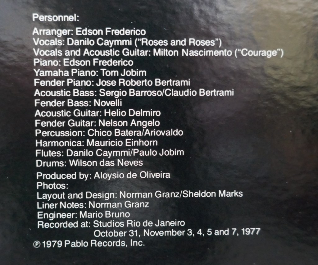 I love Brazil はPablo移籍後初のアルバムで、リオデジャネイロ録音。当時のブラジルMPB界の売れっ子が数多く参加していることでも、Pabloの気合の入れ方が伝わってきます。JobimやNascimentやCaymmi一家の参加が注目されていますが、大のAzimuth好きの私にとってはJosé Roberto Bertramiが全編でエレピとピアノを弾いていることが、この盤を購入する決定打となりました。一曲目の”If You Went Away (Preciso Aprender a Ser Só)”から、Bertramiの出しゃばらない軽やかなフェンダーローズの音が聞こえてきて「お、これやこれや」となってしまいます。Bertramiの鍵盤はほぼ伴奏のみで、ソロを聴けるわけでもないのですが、アルバム全体のレイジーな雰囲気を醸すことに大きく貢献しています。続く、Jobimでおなじみの”Triste”もVaughanの迫力ある声で歌われると、これはこれで味わい深く聴こえるものです。”Travessia”などではその頃乗りに乗っているNascimentがボーカルを披露しています。