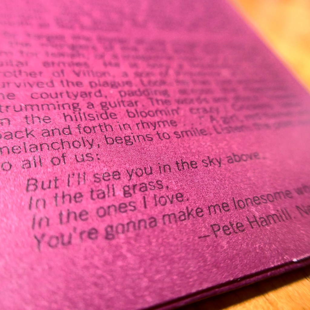 ジャケットの裏には80年代に日本でも人気が出たジャーナリストのPete Hamillがライナーノーツを書いていて「ここにディランが感情を取り戻している…イェイツやブレイクのように個人的で普遍的だ」と、フォーク時代のディラン再来を賛辞するような言葉を残しています。
