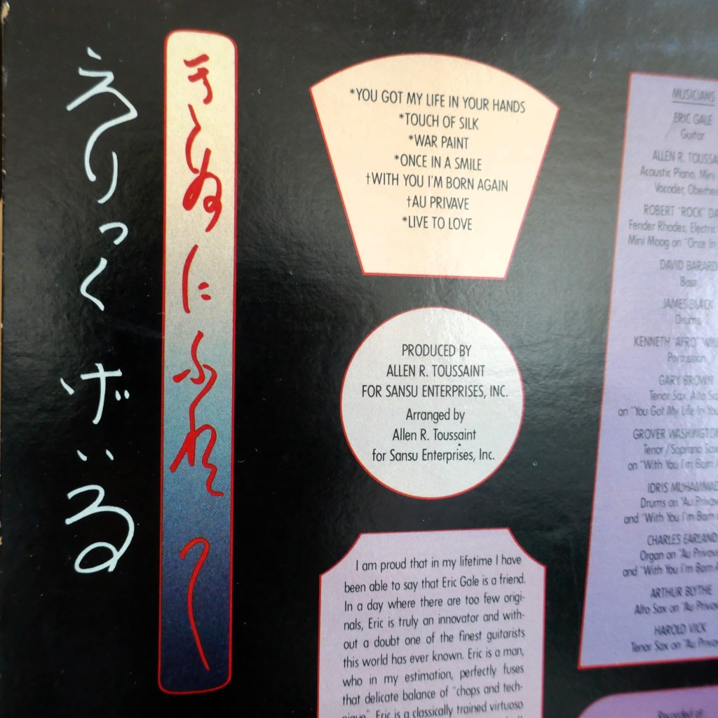 ジャケット裏に「きぬにふれて えりっくげいる」とひらがなで書かれていますね。Galeの奥さんはマコさんという日本人で、大の日本びいきだったとのこと。この頃は渡辺貞夫との共演も多く、頻繁に日本に来ていたようです。