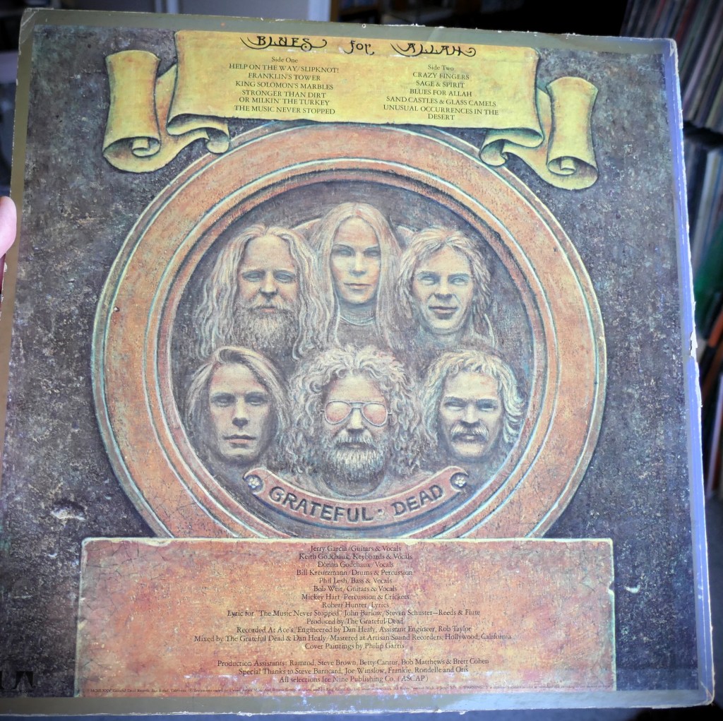 例のごとく、飲み会前の隙間時間に、札幌駅近辺の中古レコード店をパトロールしてきました。新入荷コーナーにめぼしいものがなく、ヴァン・モリソンやトム・ウェイツの棚を掘っていたその時、不意に視界に飛び込んできたのがこの一枚。Grateful Dead『Blues for Allah』(1975年)でした。